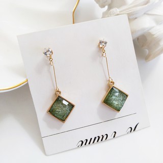 Bông tai dáng dài hình chữ nhật đơn giản đính đá pha lê MS180