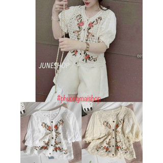 Áo ren cộc tay khuy ngọc hai túi siêu xinh