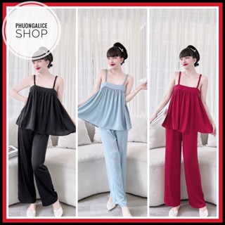 Đồ ngủ 2 dây thắt tết quần dài gợi cảm, đồ bộ satin mặc nhà- Phuongaliceshop