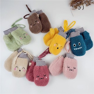Găng tay len lót lông đính gấu dành cho bé trai bé gái mùa đông 1-3 tuổi mã T32