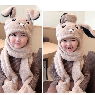 Mũ lông tai thỏ ú oà kèm khăn quàng cổ liền găng tay dành cho bé 0-4 tuổi, 4-9 tuổi và trên 9 tuổi ấm áp mùa đông mã T74
