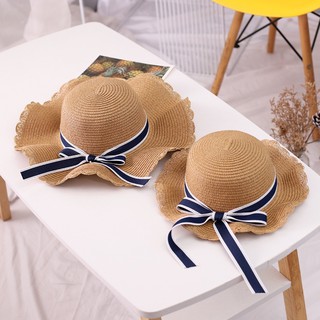 Set mũ cói cho mẹ và bé gái đi biển đính nơ
