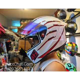 Nón bảo hiểm Fullface M266 2 kính màu trắng lên tem 46 đỏ