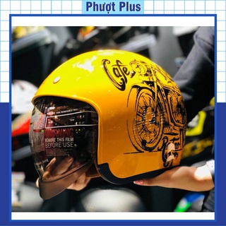 Nón bảo hiểm 3/4 kính âm royal 139 tem cam cafe racer