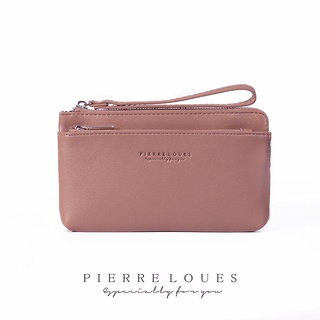 Ví dài cầm tay PIERRE LOUES có khóa kéo đôi sức chứa lớn có dây đeo tay dành cho nữ