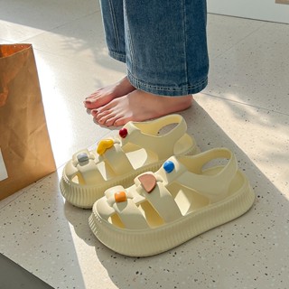Dép Sandal Đế Dày Đục Lỗ Cài Nút Dễ Thương Thời Trang Mùa Hè Cho Nữ