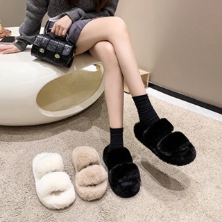 Dép Bông Đi Trong Nhà Mùa Thu Đông 2022 Hai Sọc Đế Phẳng Ấm Áp Cho Nữ Da005
