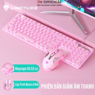 Combo Bàn Phím Chuột Màu Hồng Giả Cơ Có Dây LANGTU L1-G502 LED Xuyên Chữ Mặt Mika Dán Hợp Kim Nhôm Cao Cấp Giảm Âm Thanh