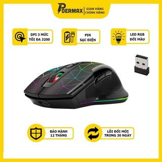 Chuột Không Dây Poermax M107- USB 2.4GHz, Nút DPI, Dùng Pin, Phù Hợp Cho PC Và Laptop, Bảo Hành 6 Tháng
