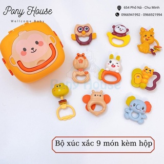 Bộ Đồ Chơi Xúc Xắc Gặm Nướu Giúp Bé Tập Cầm Nắm An Toàn Cho Bé Có Hộp Đựng 9 Món