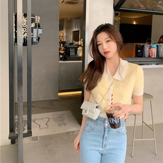 Porozi Áo dệt kim tay ngắn kiểu Hàn Quốc thiết kế ngọt ngào cho nữ