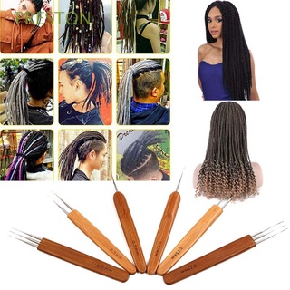 1 Cây Móc Tạo Kiểu Tóc Bện Micro Tay Cầm Bằng Gỗ Tre + Dụng Cụ Tạo Kiểu Dreadlock Bằng Thép Không Gỉ