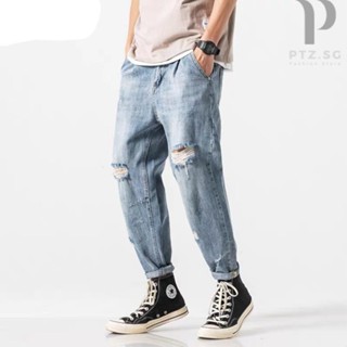 Quần jean nam ống bo chân chất bò rách cao cấp co dãn 4 chiều cực đẹp rin trơn from dáng skinny đẹp LEPHG MS1