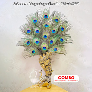 Lông công phong thủy Q Decor, dài 25-30cm, Mắt to 4-6cm, nhập khẩu Ấn Độ