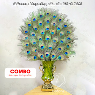 Bình cắm lông công Q Decor BC01 và 36 lông công mắt to 4-6cm