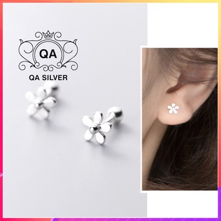 Khuyên tai bạc 925 hoa năm cánh chốt bi vặn bông nữ S925 FLORA QA SILVER Earrings EA220809