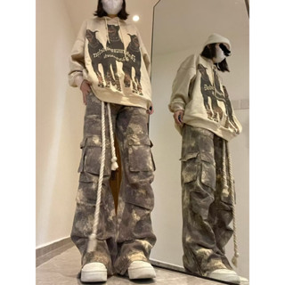 QADCOL Quần denim Ống Rộng Phối Rách Thời Trang Đường Phố Mỹ Cho Nữ