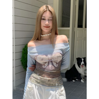 QADCOL Áo Thun Tay Dài Trễ Vai In Họa Tiết Bươm Bướm Thời Trang Mùa Hè Quyến Rũ Cho Nữ