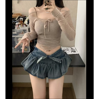 QADCOL Áo denim Ngắn Hai Dây Thiết Kế Ngôi Sao Thời Trang Mùa Hè Cho Nữ