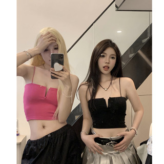 QADCOL Áo Tank Top Hai Dây Màu Đỏ Hồng Thuần Khiết Quyến Rũ Ngọt Ngào Cá Tính Và Spicy Ôm Sát Vừa Vặn Độc Đáo Cho Nữ Mặc Ngoài Trời Vào Mùa Hè