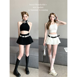 QADCOL Spice Girl Áo Ngắn Hai Dây Cổ Treo Hoa Thuần Khiết Có Đệm Ngực Bên Trong Phong Cách Quyến Rũ Mặc Ngoài