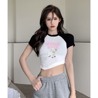 QADCOL Áo Thun Ngắn Tay Ôm Dáng Họa Tiết Hoạt Hình Phong Cách Mỹ Thời Trang Mùa Hè Dễ Phối Đồ Cho Nữ