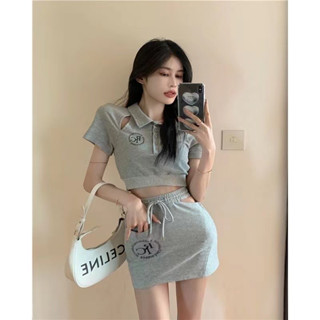QADCOL Mới Set Áo Thun Ngắn Tay + Chân Váy Chữ A Lưng Cao Ôm Dáng Quyến Rũ Dành Cho Nữ