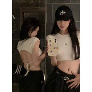 QADCOL Áo Thun Dệt Kim Ngắn Tay Hở Lưng Thời Trang Mùa Hè Dành Cho Nữ