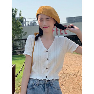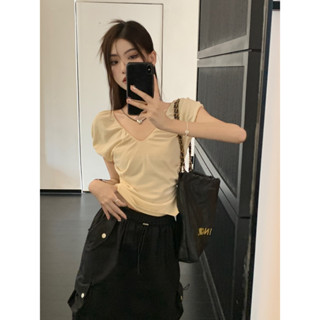QADCOL Áo Thun Dệt Kim Ngắn Tay Cổ Chữ V Xếp Ly Dáng Ôm Thời Trang Mùa Hè Dành Cho Nữ