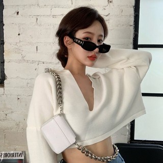 QADCOL Áo Ngắn Cổ Chữ v Sang Trọng Độc Đáo Thời Trang Mùa Hè Quyến Rũ Dành Cho Nữ