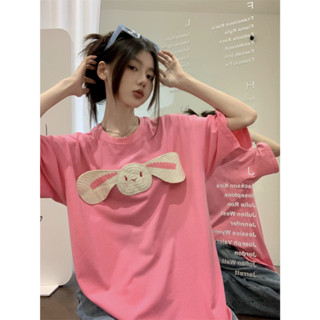 QADCOL Áo Thun Tay Ngắn Cổ Tròn In Hình Thỏ Ba Chiều Thiết Kế Mỏng Thời Trang Mùa Hè Mới Dành Cho Bạn Nữ
