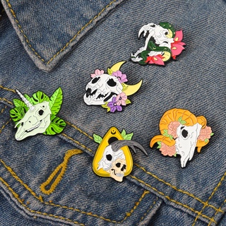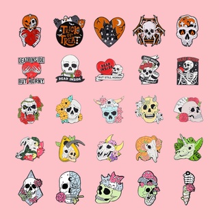 Huy hiệu cài áo QIHE JEWELRY tráng men đầu lâu 5 mẫu tùy chọn phong cách punk gothic phù hợp làm quà tặng cho bạn bè