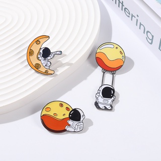 Ghim cài tráng men QIHE JEWELRY trang trí balo/quần áo hình phi hành gia và mặt trăng dành cho bạn nữ