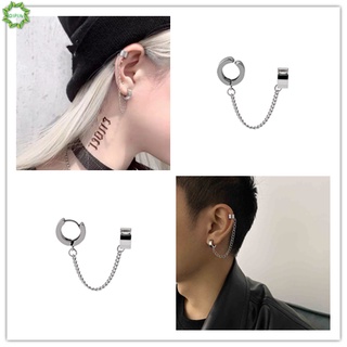 Khuyên kẹp vành tai bằng thép không gỉ phối dây xích tua rua phong cách Punk hiphop dành cho nam và nữ