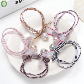 Dây thun buộc tóc bằng chất liệu cao su phối họa tiết sọc ngang đơn giản xinh xắn dành cho nữ