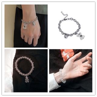Vòng Tay Dây Xích Mặt Hình Gấu Phối Quả Bóng Trong Suốt Phong Cách Hip Hop Thời Trang Cho Nam Và Nữ