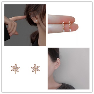 Khuyên Tai Mini Mạ Bạc 925 Hình Lá Phong Đính Đá Thời Trang Cho Nữ