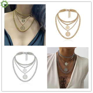 Vòng cổ bốn lớp mặt hình tròn phong cách hip hop cổ điển cho nữ