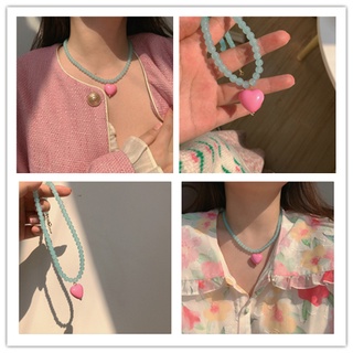 Cod Qipin Vòng cổ Chuỗi Hạt Pha Lê Hồng Bạc Hà Xanh Lam Ngọt Ngào Tinh Tế Không Đối Xứng Phong Cách Hàn Quốc Cho Nữ