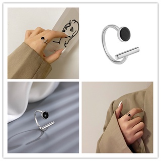 Nhẫn Kiểu Hình Học Màu Đen/Bạc Hình Tròn Có Thể Điều Chỉnh Kích Thước Phong Cách Hàn Quốc Cho Nữ