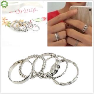 Bộ 7 Nhẫn Hợp Kim Kiểu Dáng Đa Dạng Phong Cách Hàn Quốc