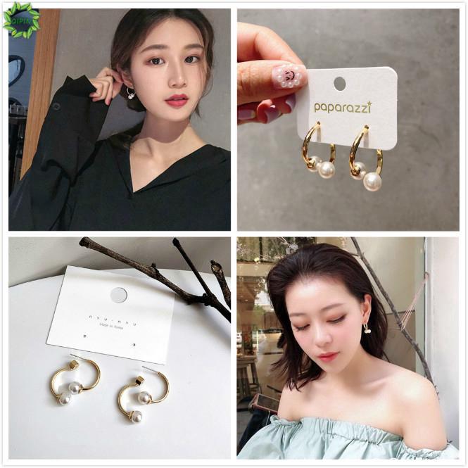 Khuyên tai mạ vàng/bạc đính ngọc trai giả thời trang sành điệu cho nữ