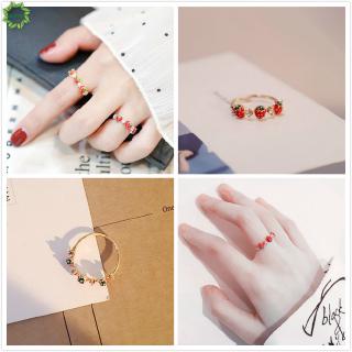 Nhẫn đeo tay kim loại đính đá kiểu dáng trái dâu xinh xắn cho nữ