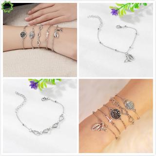 Bộ 5 vòng tay thời trang Bohemia điều chỉnh được mặt hình trái tim/thánh giá/vỏ sò biển