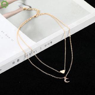Dây Chuyền Nhiều Lớp Mặt Hình Mặt Trăng Và Trái Tim Thời Trang Cho Nữ