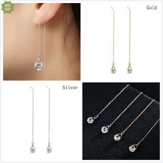 Khuyên tai dáng dài đánh đá sapphire màu trắng thanh lịch