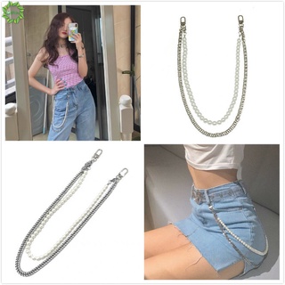 thắt lưng nữ dây xích Chuỗi dây hai lớp gắn thắt lưng quần phối chuỗi hạt ngọc trai giả phong cách punk cá tính thời trang cho nữ