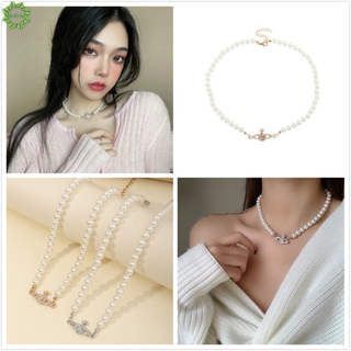 Vòng cổ mặt hình hành tinh phối hạt ngọc trai nhân tạo thời trang cho nữ