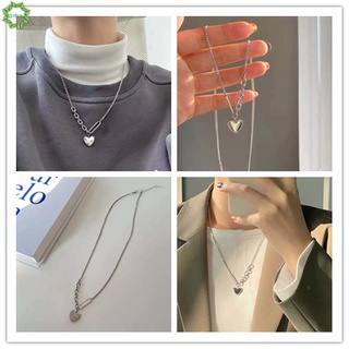Vòng cổ mặt dây hình trái tim màu bạc phong cách hiphop Hàn Quốc
