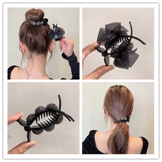 Phụ Kiện Kẹp Tóc Đuôi Ngựa Bằng Acrylic Hình Nơ Đính Đá Phong Cách Hàn Quốc Tinh Tế kẹp 2 mặt